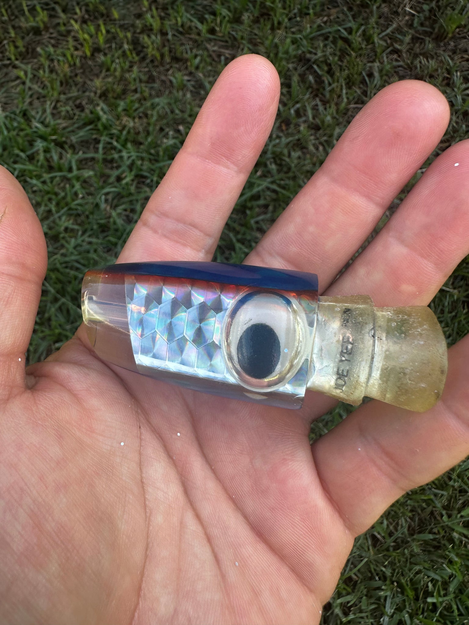 Get this super rare Blue with red stripe superman Top Joe Yee Small Plunger with teddy bear eyes!!  Classic proven lure!   ONE ONLY!