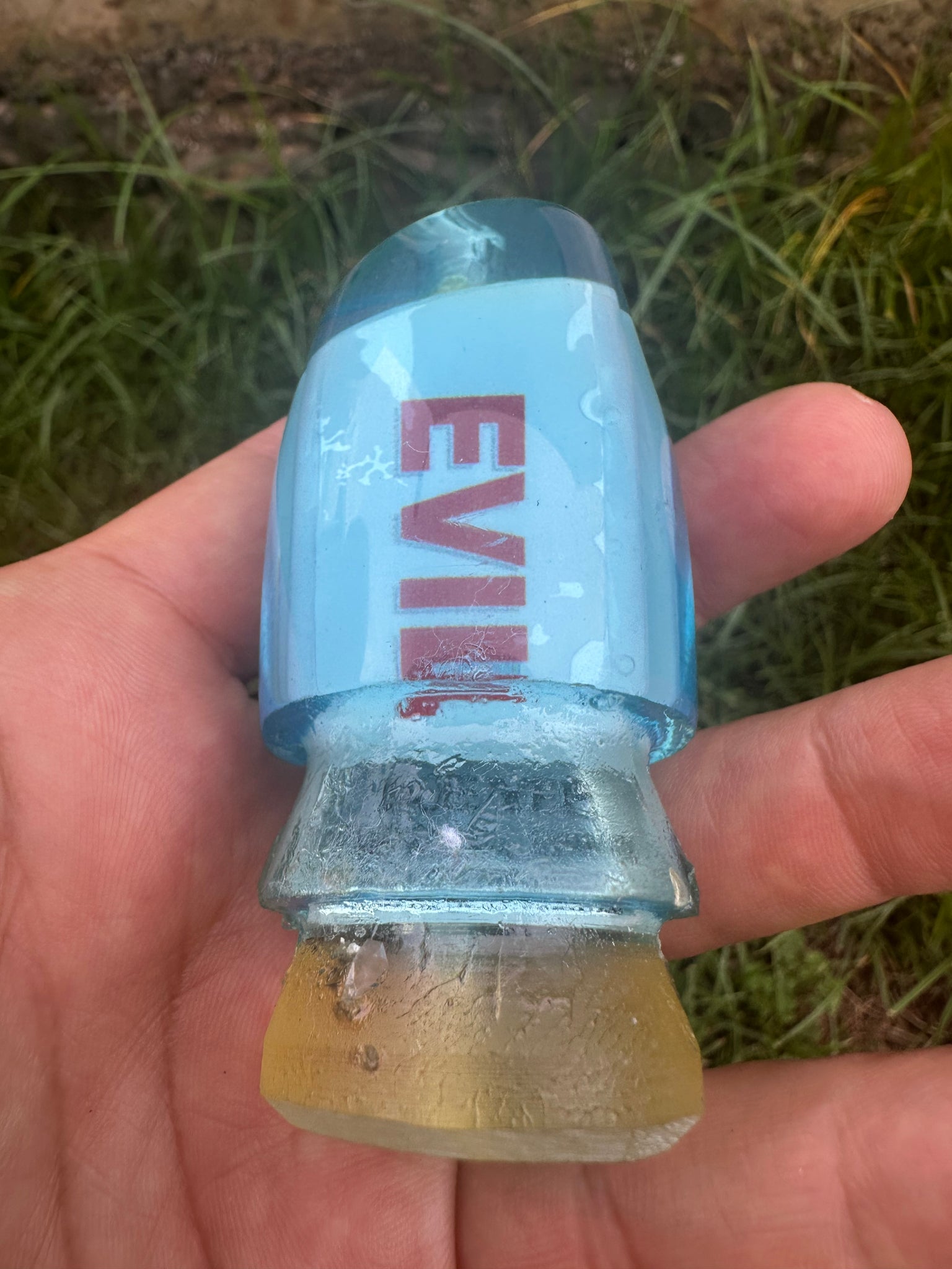 New very vintage made years ago Rare Joe Yee Original Blue Tint Apollo Evil with the EVIL sticker inserts! Green one side and red on the other side. Most of the inserts have a little delaminated blem but they are still extremely vintage classics! Get this extremely Rare classic Proven marlin killer lure while you can!.